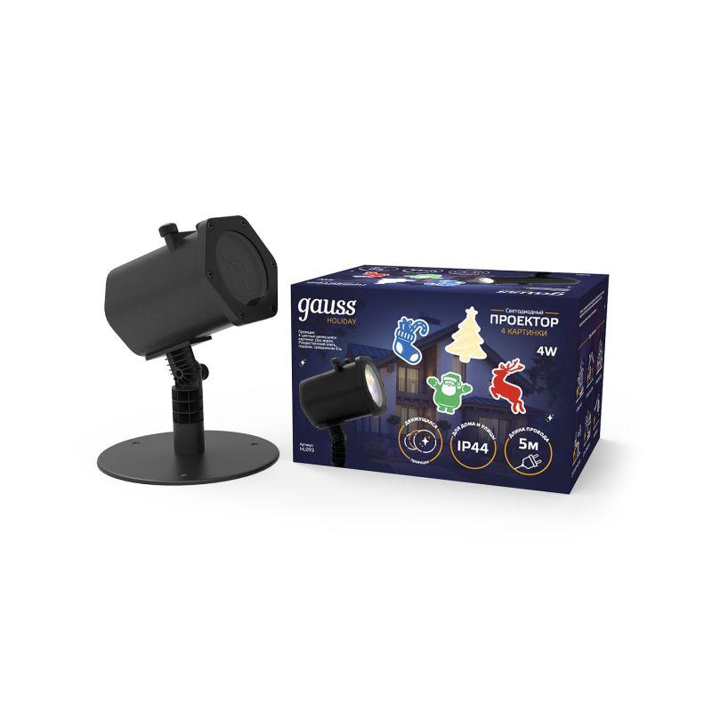 Купить Проектор светодиодный Holiday 4 картинки Дед Мороз; Рождественский Олень; Подарки; Елка анимирован. картинки IP44 GAUSS HL093 GAUSS HL093 по лучшей цене с доставкой